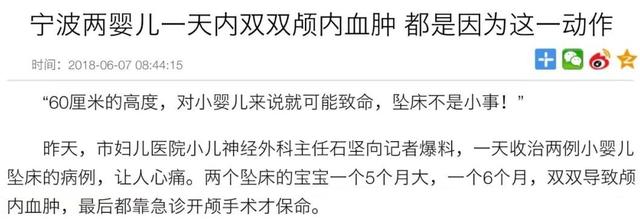 2018年6月,宁波市妇女儿童医院一天就收治了2例婴儿坠床病例。